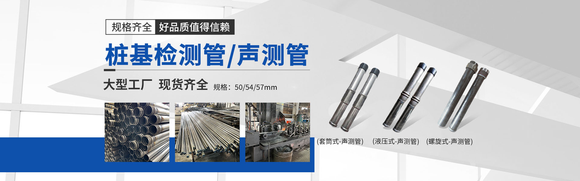 河北钧声管业有限公司专业生产桩基、桥梁、套筒式、钳压式、螺旋式声测管等,主要应用于公路桥梁、市政工程、铁路工程的各种桩基的超声波、压浆、混凝土冷却等预埋管路系统,河北均声管业有限公司以“诚信、务实、高质”为理念,致力于通过技术手段,从事建筑新科技、新材料的开发应用。公司重质量,重服务,力求让客户使用到放心产品,享受到满意服务。 本公司生产经营的声测管,专门应用于公路桥梁、市政工程、铁路工程的各种桩基的超声波、压浆、混凝土冷却等预埋管路系统…
